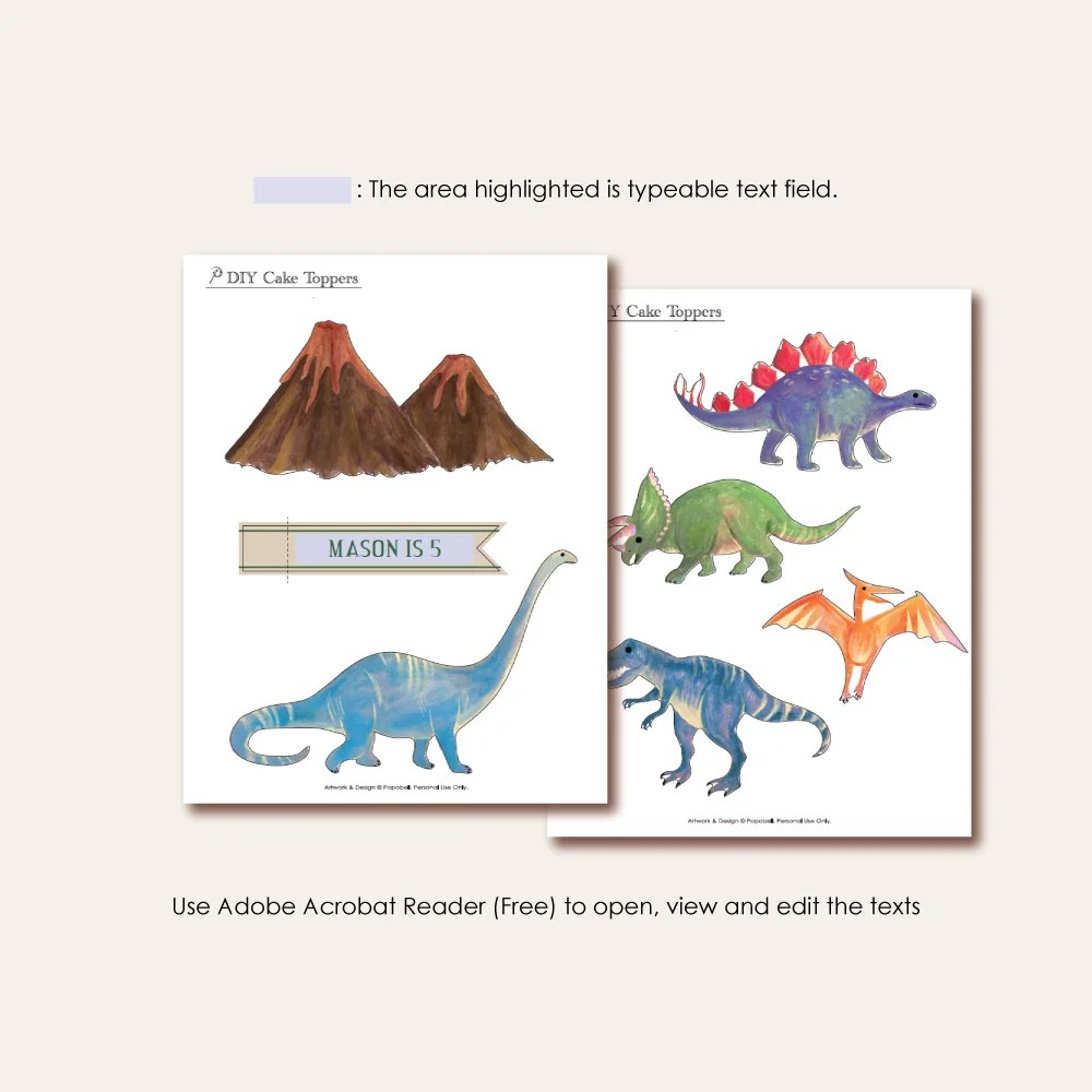 Dinosaurs Cake Topper Printable | DIY Personalized Kids Cake Topper | Custom Dinosaur Birthday Party Cake Decor Centerpiece | Editable PDF